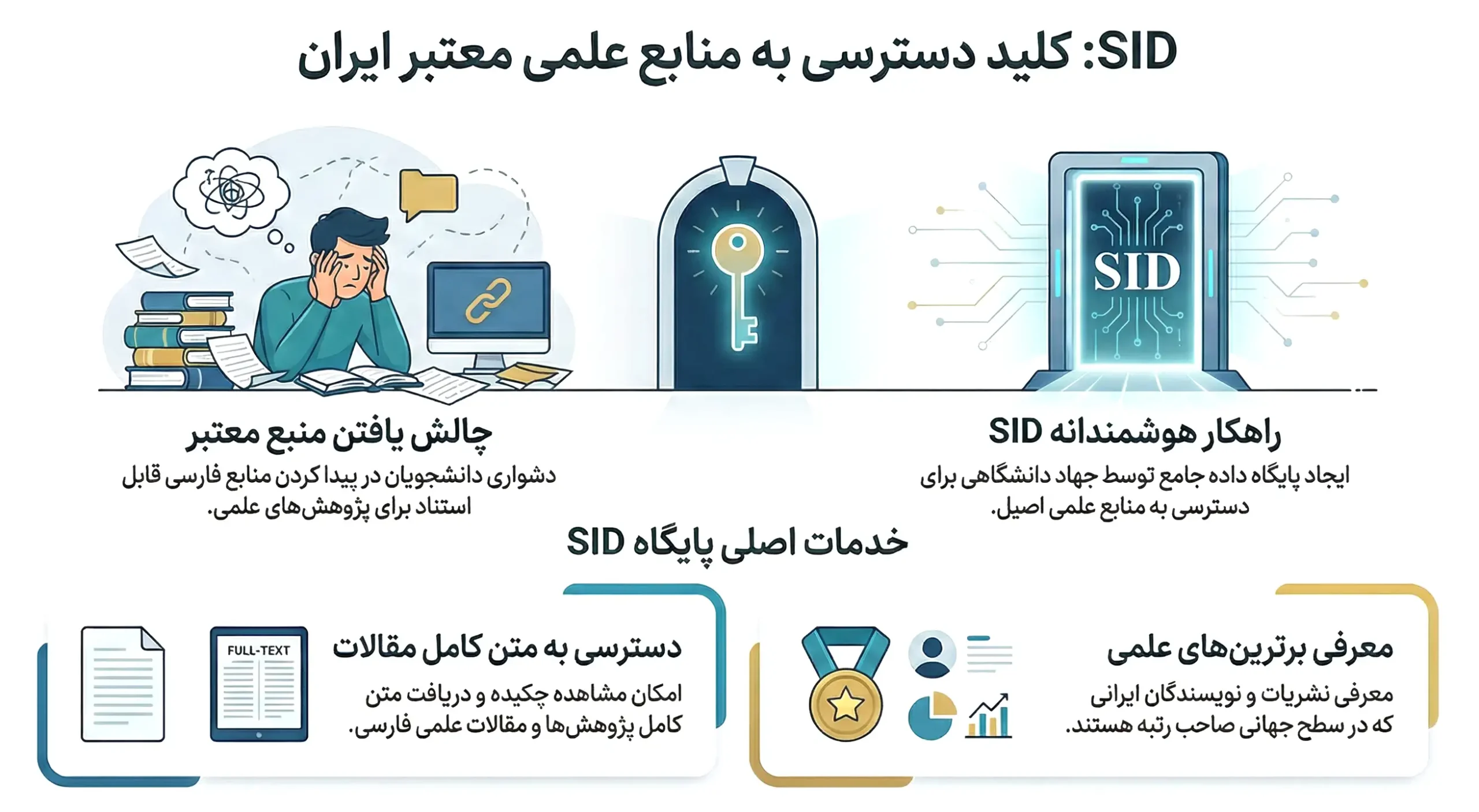 دانشجویانی که صرفاً به منابع خارجی یا موتورهای جستجوی عمومی متکی هستند، معمولاً با کمبود دادههای مرتبط با شرایط بومی مواجه میشوند. در مقابل، SID امکان دسترسی به پژوهشهایی را فراهم میکند که بر اساس واقعیتهای جامعه ایرانی، قوانین داخلی، نظام آموزشی کشور و نیازهای بومی انجام شدهاند.
